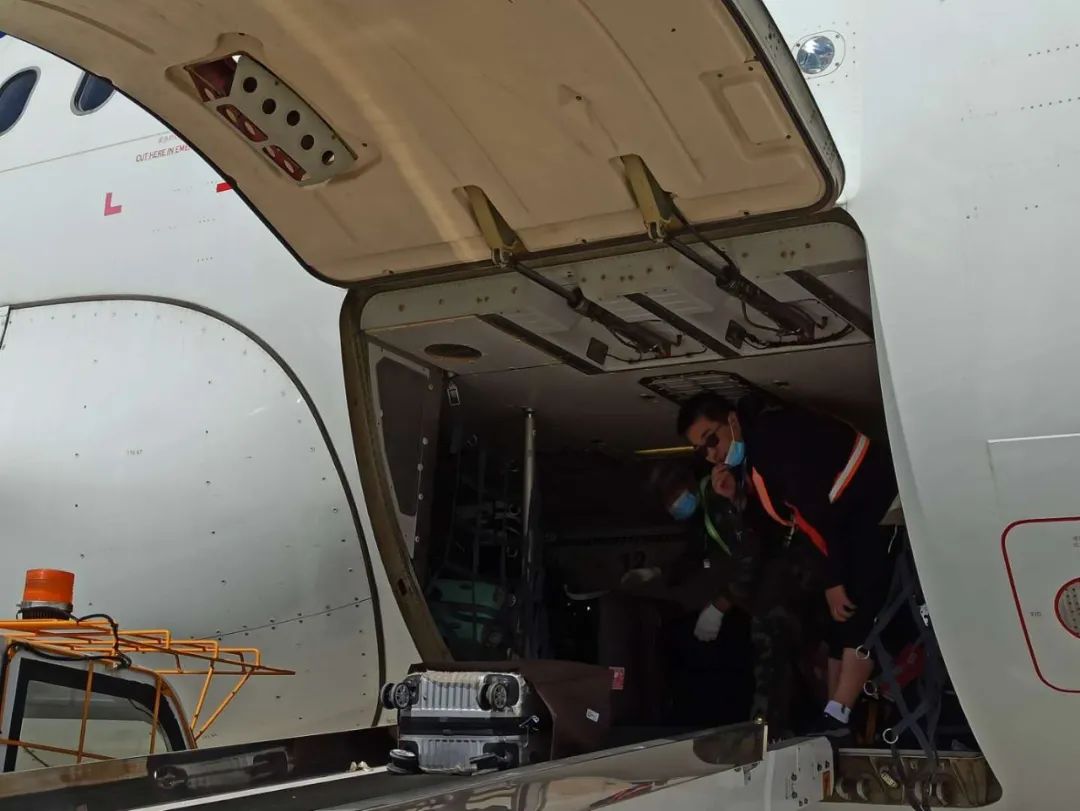 顶着烈日,监装监卸员爬进货舱,认真履行着岗位职责,仔细查看卸机工作。清点核对每一件行李,仔细擦拭箱包上的尘土,用额头缜密的汗水,确保在第一时间将旅客的行李完好送达。他们晒的通红的脸庞,却依然洋溢着自信的微笑。